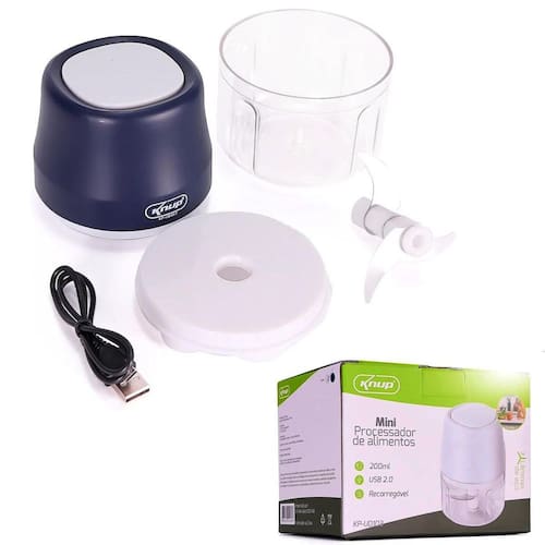 Mini Processador De Alimentos Elétrico Sem Fio 3 Laminas Descrição Mini Processador Knup KP-UD103 Pra quem quer ganhar tempo na cozinha e de modo pratico triturar moer e processar seus alimentos.