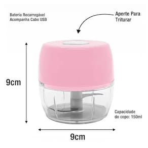 Produto de altíssima qualidade e facilita na hora de triturar seus alimentos. Pode ser utilizado para triturar todos os tipos de alimentos como verduras, alho, cebola, pimentas, temperos. Também é muito útil na hora de fazer papinha e molhos. Possui 2 lâminas em aço inox removível, facilitando na hora de lavar e não necessita de fios ou tomada. Basta deixá-lo carregado anteriormente que poderá utilizar em qualquer lugar.