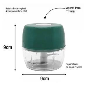 Produto de altíssima qualidade e facilita na hora de triturar seus alimentos. Pode ser utilizado para triturar todos os tipos de alimentos como verduras, alho, cebola, pimentas, temperos. Também é muito útil na hora de fazer papinha e molhos. Possui 2 lâminas em aço inox removível, facilitando na hora de lavar e não necessita de fios ou tomada. Basta deixá-lo carregado anteriormente que poderá utilizar em qualquer lugar.