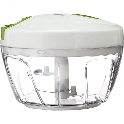 Características Gerais Com este mini processador você corta, pica e tritura seus alimentos com muito menos esforço. Basta puxar a cordinha e pronto. Ele é fácil de limpar e ideal para o dia a dia na sua cozinha. Composição: Plástico e MetalDimensões: 12 x 9,5cm