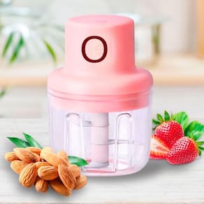 Mini Processador de Alimentos Sem Fio Bateria Durável Operação simples: Basta pressionar o botão e em segundos o alho, pimenta ou outro alimento é triturado. Este modelo tem três lâminas de aço inoxidável.