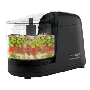 Mini processador Mallory New Oggi preto com 150W de potência e capacidade de 350ml. Ideal para processar, cortar, triturar e moer alimentos.Acessórios