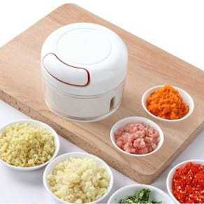 O Mini Processador Manual de Alimentos é uma excelente opção para economizar tempo na hora de cozinhar, fazer saladas, entre outras refeições. Este utensílio prático é ideal para fatiar Verduras, Legumes, Frutas, Ervas e Grãos. Possui duas lâminas afiadas em Aço Inox que giram rapidamente com eficiência quando o processador é acionado através do Sistema de Corda Retrátil. Além disso, contém uma base antiderrapante para melhor aderência na superfície ao utilizar o produto.