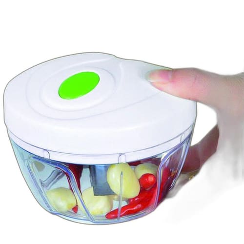 Introdução - O triturador e processador de alimentos manual funciona de maneira bem simples: Basta inserir o alimento no recipiente de acrílico, fecha-lo, puxar a corda retrátil cerca de 5 vezes e pronto, o alimento estará processado. A espessura do alimento pode ser controlada facilmente através do número de vezes em que a corda é puxada. Quanto mais vezes, mais processado será o alimento. Outra vantagem deste modelo está nas dimensões do mesmo, que são bem maiores do que os modelos presentes no mercado. Além disso, o número de lâminas maior permite um corte mais rápido e preciso. O processador surge como uma excelente opção para o uso diário, visto que o acionamento por corda é mais rápido e prático do que os métodos tradicionais e as cinco lâminas de corte permitem um corte mais preciso. Além disso, os materiais em acrílico e aço inoxidável fazem com que o processador seja extremamente bonito e durável para o uso constante. Por fim, o tamanho do processador permite que o mesmo seja muito anatômico e seu uso seja mais confortável do que outras opções existentes no mercado. Benefícios - Formato anatômico e prático; - Processa os alimentos de forma rápida e eficiente; - Não deixa pedaços grandes após o processamento; - Não deixa cheiro nas mãos - Produto Seguro Dados Técnicos - Material: Acrílico e Aço Inoxidável; - Possui três lâminas Inox para corte; Itens Inclusos - 01 Mini Processador e Triturador de Alimentos Manual Informações Importantes - Garantia de 3 meses contra defeito de fábrica