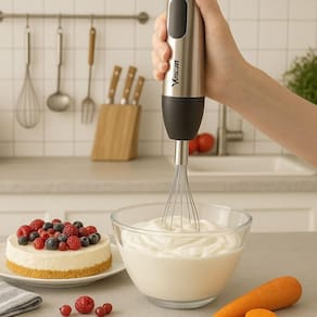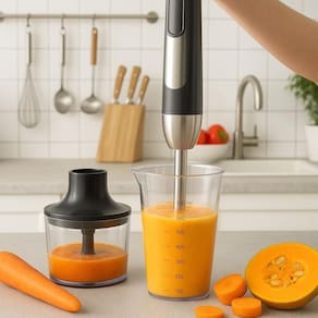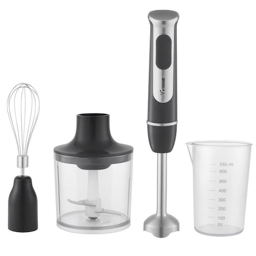 Mixer com haste inox, Copo medidor de 650ml, Batedor tipo fouet, Mini processador chopperPorta-fio