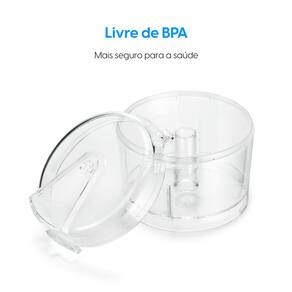 Além disso, sua capacidade de até 400mL proporciona um preparo na medida certa para o dia a dia, sendo compacto o suficiente para economizar espaço em sua cozinha. Com 2 travas de segurança, você pode usar o processador com tranquilidade, garantindo a segurança durante o uso. E o melhor de tudo, ele é livre de bisfenol A (BPA free), assegurando que sua saúde não seja comprometida.