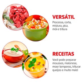 Com sua Velocidade Normal ou com a Função Pulsar, que é Mais Rápida, você controla o grau de trituração do alimento. O Bocal Alimentador facilita na hora de você colocar verduras, legumes ou temperos. E suas Peças São Removíveis, sendo mais fáceis de limpar. Sua Faca em Aço Inox (inoxidável) processa e mistura frutas, vegetais, queijos, carnes, castanhas, cocos e temperos. O Mini Processador Turbo Pratic MP16B também prepara mousses e maioneses.