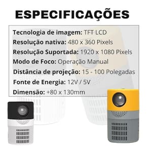 Mini projetor conexão espelhamento para android via miracast Cor: amarelo O mini projetor é o novo e moderno cinema em casa, um dispositivo portátil que transforma qualquer ambiente em um cinema particular. Com sua tecnologia de projeção de alta qualidade, ele oferece imagens nítidas e vibrantes para que você possa desfrutar de filmes e jogos em grande estilo. Imagine poder assistir aos seus filmes favoritos em uma tela grande, e em qualquer lugar que você vá. O mini projetor oferece tudo isso e muito mais ele é fácil de usar, compacto e portátil, tornando-o o companheiro perfeito para suas aventuras de entretenimento. Com o mini projetor você pode experimentar o melhor dos dois mundos: o conforto de casa e a emoção de um cinema. Seja para uma noite de cinema em casa com amigos e familiares ou para jogar seus videogames favoritos na tela grande, este dispositivo é a escolha ideal. ------------------ Atenção ------------------ Para transmitir diretamente do celular, necessário um aparelho transmissor tv stick, fire stick, chromecast, entre outros . ------------------ ------------------ dá para conectar com o pc e notebook R: sim, basta conectar o cabo hdmi. consigo usar fora da tomada ou com powerbank R: o projetor possui uma fonte de alimentação, que deve permanecer conectada na tomada durante todo tempo de uso. é possível espelhar o celular no projetor R: não é possível espelhar via celular. Para fazer espelhamento é necessário usar dispositivo de streaming como, chrome cast, fire stick, miracast e etc... consigo conectar o celular via cabo usb R: não, pois a saída usb é apenas para conexão de pen drive. consigo conectar tablet, , celular via cabo hdmi. r: não, pois esse modelo de projetor não conecta em celular, tablet, e etc... da pra assistir quais streaming de filme R: você consegue assistir a todos. Basta conectar o cabo e usufruir do produto. consigo usar o projetor para jogar vídeo game R: sim, é possível. Basta apenas conectar o cabo. consigo conectar dispositivo de streaming e fazer do projetor uma televisão R: sim, pra isso só precisa conectar o dispositivo de streaming no hdmi, plugar a conexão de energia do usb e assistir a sua série, filme e vídeo preferido... o projetor possui caixa de som interno embutida É possível conectar via cabo p2 em soundbar , hometheather e caixinha de som. R: sim, é possível ------------------ Especificações ------------------ Resolução nativa: 480 x 360 pixels. Resolução suportada: 1920 x 1080 pixels. Distância de projeção: 15 - 100 polegadas. Tipo de brilho: 30.000 lumes. Tamanho da tela: 80 á 130mm. Fonte de energia: 12v / 5v. Interface de hardware: microsd, usb, hdmi e av. Ajuste de foto: manual. Altura: 12,5 cm. Largura: 7,5 cm. Peso: 277g. ------------------ Conteúdo ------------------ 1x mini projetor. 1x fonte de alimentação. 1x cabo componente. 1x controle. 1x manual. Anúncio referente a projetor garantimos a devolução por arrependimento em até 7 dias, após o recebimento e de 15 dias contra defeitos de fabricação. Homologação Anatel: 060792000160