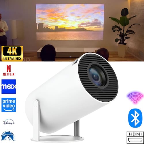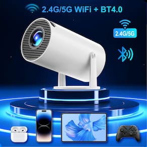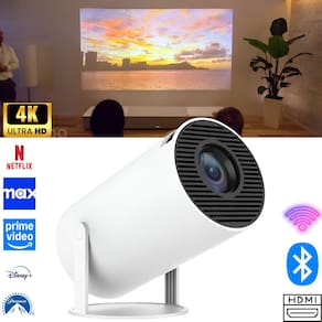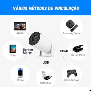 Descrição do produto O Mini Projetor [MARCA] HY300 Smart combina praticidade e conectividade para uso doméstico, estudos e apresentações. Com sistema Android integrado, permite acessar aplicativos compatíveis diretamente no projetor. As conexões Wi-Fi e Bluetooth facilitam o streaming e o pareamento de caixas de som, fones ou soundbars sem fio. Compatível com conteúdo 4K (decodificação) e reprodução em Full HD, oferece imagem nítida para filmes, séries, esportes e games em ambientes controlados.