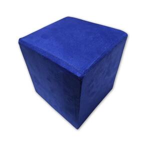 Mini Puff Banqueta Quadrado Cubo Decorativo Courino E Suede Azul Royal Suede