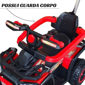 Especificações: Marca: importway Modelo: bw370 Produto indicado para crianças a partir de 3 anos Bateria recarregável 6v Cores: vermelho, azul e rosa Possui apoio para os pés, guarda corpo, barra de empurrar e cobertura Possui luz e música Peso máximo: 23kg Produto certificado pelo inmetro