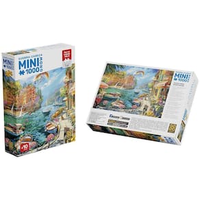 A magia da Pintura Mediterrânea com nosso mini quebra-cabeça de 1000 peçasA imagem desta pintura é uma representação da beleza do Mediterrâneo, com uma ilha encantadora ao fundo, prédios coloridos e um mar tranquilo onde barcos passeiam. E, para completar o cenário, uma pipa voa livremente no céuA partir de 10 anosQuantidade de peças: 1000Dimensões aproximadas: 44 x 30 cmDicas para montagem:1. Confira o número de peças com a informação existente na embalagem.2. Providencie uma base papelão ou madeira um pouco maior que a imagem a ser montada. As dimensões da imagem podem variar em até 1%.3. Separe as peças com cantos retos e monte, sobre a base, toda a borda da imagem a ser montada.4. Separe as demais peças, agrupando-as pelas cores, para facilitar a sua localização.5. Quando chegar a uma área com muitas peças da mesma cor, separe-as pelo formato. 6. Mantenha o quebra cabeça em lugar plano, enquanto estiver fazendo a montagem.7. Depois de montar, certifique-se de que todas as peças estão bem encaixadas, e nos lugares corretos. Homologação Inmetro: CE-BRI/ICEPEX-N 01264-25-23