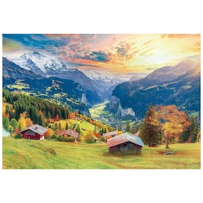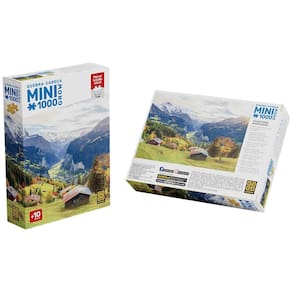 Este quebra-cabeça de 1000 peças em tamanho mini (1,1 cm cada) é perfeito para quem ama desafios, detalhes e paisagens deslumbrantes. A imagem traz uma charmosa vila suíça cercada de montanhas, vales verdes e casinhas típicas um visual que deixa qualquer ambiente mais bonito depois de montado.