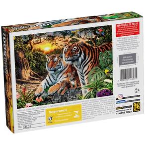 Na imagem, quatro tigres aparecem "expostos" na tela. Mas há mais felinos espalhados pela foto. Na árvore, no formato das folhas... o artista abusou da criatividade e conseguiu essa proeza.