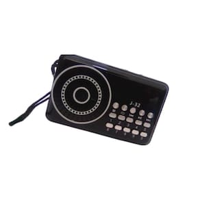 Especificações: - Alimentação DC: 5V - Bateria 3.7v 800 a 1000 mah Li-ion (inclusa) - Entradas: USB / MicroSD / Fone de ouvido - Bateria Removível Li-ion - Display Digital - Botão Liga/Desliga - Botão Controle de volume - Botões 1-0 para selecionar faixas de rádio ou faixas de musicas - Botão Play e pause - FM: 87.5-108mhz - Potência: 3W RMS - Medidas aproximadas: 11 x 7 x 3 cm (L x A x P)