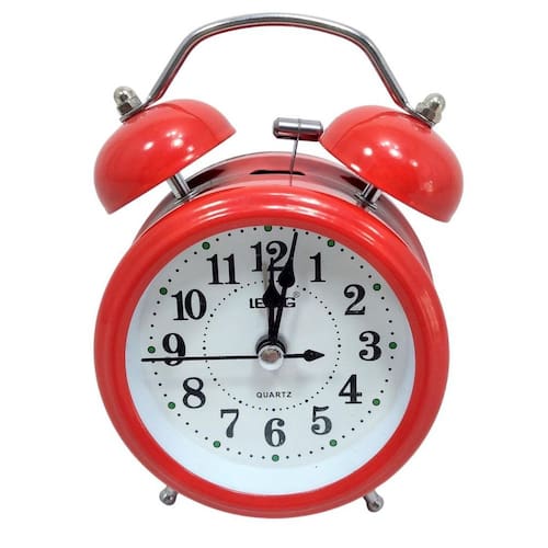 Mini Relógio Despertador Analógico Retrô Com Alarme Vintage Lindo relógio de mesa analógico com despertador estilo retrô, Possui uma discreta iluminação para auxiliar em ambiente escuro. O despertador é mecânico do tipo retrô com o martelinho batendo Nos dois sinos metálicos reproduzindo o som característico dos Antigos despertadores de corda. Funciona com 1 pilha AA inclusa .