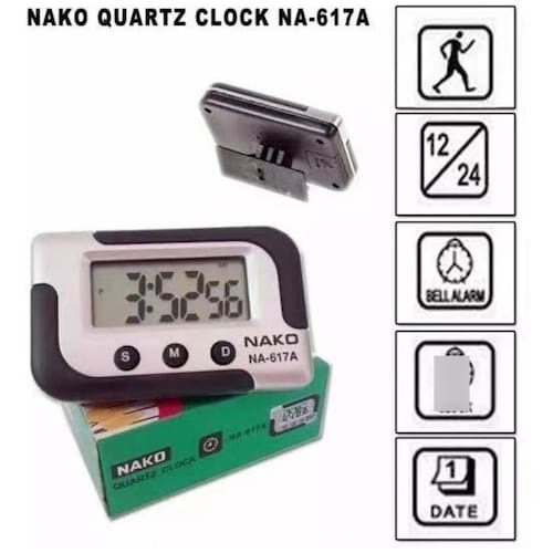 Mini Despertador Nako Digital com Cronômetro Prateado Na-617a Mini despertador de mesa com design simples e moderno, mostra data, hora e possui alarme programável. Especificações: Marca: Nako Cor: Cinza Modelo: 617A Tamanho: 7cm x 4,5cm x 2,7cm Itens Inclusos: - 01 Relogio despertador Marca: Não Informado