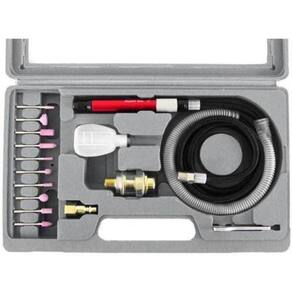 A Mini Retífica Esmeril de Ar Pneumático do tipo caneta com 16 peças, é utilizada para furar, afiar, lixar, cortar, polir, lustrar, gravar, esmerilhar e muito mais. Marca: Gudcraft Características: -Composição: Alumínio e ferro. -Velocidade máxima: 56000Rpm livres. -Regulador de velocidade embutido. -Mangueira de ar revestida de 1,5m. -Pressão de ar: 90Psi. -Consumo de ar: 2 cfm. -Vem com engate rápido de 1/4. -haste das pontas montadas: 1/8". -Entrada de ar: 1/4NPT. -Mangueira de ar: 3/8". Conteúdo: -1 Mini retifica esmeril de ar pneumático. -1 Mini almotolia. -1 Porta óleo. -2 Chaves. -1 Nipple. -10 Pontas montadas -Acompanha caixa plástica. Aplicação: Ideal para trabalhos manuais, artesanatos e hobby que necessitam furar, afiar, lixar, cortar, polir, lustrar, entalhar, esmerilhar, gravar e limpar. Código: 9GQ