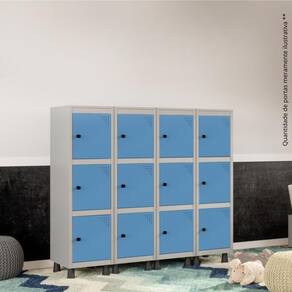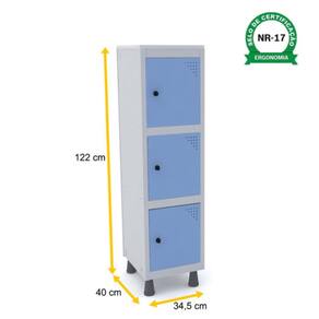 Mini Roupeiro Aço 3 Portas Azul Daly Tranca Cadeado - Pandin