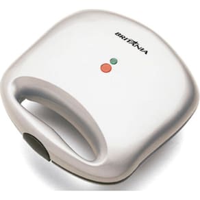 Mini Sanduicheira e Grill Britânia 2 em 1, ideal para preparar sanduíches, hambúrgueres, carnes, peixes e vegetais. Possui placas antiaderentes e trava de fechamento.Funciona como grill