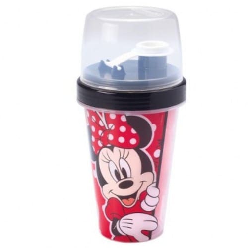 Mini Shakeira de Plástico 320 ml Minnie Vermelha - Plasútil Mini Shakeira de Plástico 320 ml com Misturador, Fechamento Rosca e Sobretampa Articulável Minnie Maouse - Vermelho Volume: 320,0 ml