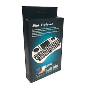Mini Teclado Air Mouse Touch Pad Smart Sem Fio Modelo Com Luz Noturna DESCRIÇÃO Use este mini teclado USB portátil com mouse integrado para controlar a seu videogame, Smart TV, Notebook etc. Possui funções de teclado QWERTY, setas direcionais, teclados de atalho e um touchpad para que possa controlar o mouse. Com uma distância de 10 metros você terá comodidade no manuseio. Especificações Luz LED na parte superior Opere em até 5 metros do seu dispositivo Touchpad ultrasensível com suporte multitouch Plug and play: não precisa instalar o software Energia: Recarregável Indicação de luz: luz indicadora sinalizada transmissão de dados e de energia. PAGE UP e PAGE DOWN para uma apresentação Toque em Converter 90 graus Fn + Esc Use o toque também na vertical Itens incluídos: 1 miniteclado sem fio 1 Adaptador sem fio 1 Manual Homologação Anatel: 060792000160 Ean: 8200550808053