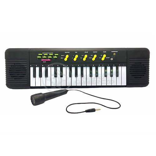 O teclado musical infantil Barcelona é uma ótima opção para presentear uma criança e proporcionará aos usuários divertidos momentos de entretenimento aliado aos estímulos à sensibilidade auditiva e a iniciação musical, ideal para aprendizagem da criança. Produto possui 32 teclas, 15 músicas programadas e com microfone que auxilia ainda mais na diversão. O mesmo reproduz o áudio falando no microfone que acompanha no produto. Caracteristicas• Tamanho Aproximado: 46cm x 13cm x 3cm• Peso Aproximado: 0,400 grams• Alimentação: 3 pilhas não inclusas• Composição: Plástico e Componentes Eletrônicos Faixa Etária Indicado para crianças a partir de 3 anos IMAGENS MERAMENTE ILUSTRATIVAS Itens Inclusos -1 Mini Teclado -1 Mini Microfone Marca: Draik