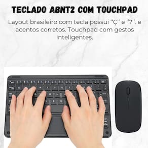 Mini teclado + mouse bluetooth para samsung s10 ultra - x925 Cor: preto Imagine a liberdade de trabalhar por até 40 horas sem interrupções, com apenas 1 hora e meia de recarga com o nosso kit teclado com touchpad e mouse bluetooth, isso é uma realidade. O design recarregável via entrada tipo c assegura que você esteja sempre pronto para a ação. facilitando cada toque em português, o teclado é equipado com teclas essenciais como 'ç' e '', proporcionando uma experiência de digitação fluida e eficiente. Seu layout ergonômico e teclas bem distribuídas garantem conforto e precisão em cada movimento. para conectar-se, basta ligar o teclado, pressionar as teclas fn + c e procurar pelo bluetooth com o nome keyboard em seu dispositivo para uma conexão instantânea. Compatível com windows, android, ios e macos, nosso kit é o parceiro perfeito para todas as suas necessidades digitais, onde quer que você esteja. leve e com um alcance de 10 metros, o kit é fácil de transportar e pronto para te acompanhar em qualquer aventura digital. Seu design ergonômico e teclas silenciosas tornam-no a escolha ideal para uso prolongado, seja no escritório, em casa ou em viagens. ------------------ Atenção ------------------ Teclado e mouse compatíveis com diversos sistemas via bluetooth Para conectar o teclado e mouse em seu dispositivo, ligue ambos os dispositivos, pressione as teclas ''fn + c'' no teclado, e procure pelo bluetooth com o nome ''keyboard'' e ''mouse'' em seu dispositivo para conectar. ------------------ ------------------ qual é a distância operacional do teclado e do mouse R: o teclado e mouse operam a uma distância de até 10 metros, proporcionando liberdade sem fio para uma experiência de digitação e navegação flexível. quanto tempo leva para carregar a bateria do teclado R: o tempo de carregamento do teclado é de 1 hora e meia, garantindo recargas rápidas para mantê-lo produtivo. o teclado possui teclas especiais ou funções adicionais R: sim, suas teclas incluem os caracteres especiais 'ç' e '', tornando-o ideal para usuários que necessitam digitar em português. quais dispositivos são compatíveis com o teclado e mouse R: são compatíveis com dispositivos bluetooth, incluindo smartphones, tablets e outros dispositivos habilitados para bluetooth, desde windows, android e ios. ------------------ Especificações ------------------ Alcance de 10 metros. Recarregável via entrada tipo c. Transmissão sem fio. Design ergonômico. Teclas silenciosas. Horas de trabalho: 40 horas. Tempo de recarga: 1,5 horas. Compatível com windows, android, ios e macos. ------------------ Conteúdo ------------------ 1x teclado com touchpad 1x mouse bluetooth 1x cabo usb Anúncio referente a teclado e mouse Acessórios que ambientam as fotos não inclusos. ------------------ Apresentação: ------------------ - qualidade garantida. - atendimento qualificado. - enviamos para todo o brasil. - compra garantida. - despachamos em até 1 dia útil após confirmação do pagamento Garantimos a devolução por arrependimento em até 7 dias, após o recebimento e de 15 dias contra defeitos de fabricação. Homologação Anatel: 037242214637