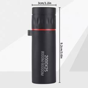 Portátil e compacto: O telescópio é fácil de transportar, tornando-o perfeito para atividades ao ar livre, como caça e camping. Óptica poderosa: este telescópio é capaz de fornecer imagens de qualidade. Resistente à água: O nível de resistência à água IPX4 garante que este telescópio possa suportar condições climáticas adversas, tornando-se uma ferramenta confiável para entusiastas do ar livre. Ideal para viagens, férias, caminhadas, camping, esportes, desfrutar da bela natureza, ver pássaros, observar espécies, uso geral e mais atividades ao ar livre. Especificação: 8X ampliação monocular portátil Cor: preto Material: escudo plástico Tipo: Monóculos Ampliação: 8x Campo de visão: 8000m/8000m lente objetiva diâmetro: 3,6mm