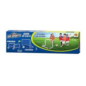 Gol 2 Em 1 - 2 Montagens Diferentes O brinquedo de futebol gol 2 em 1 é a clássica brincadeira de chutar a bola para ver quem realmente é o craque. Brinque sozinho ou com os amigos. Medidas Aproximadas Montagem 1: Altura: 68 Cm Largura: 109 Cm Profundidade: 54 Cm Medidas Aproximadas Montagem 2: Altura: 35 Cm Largura: 56 Cm Profundidade: 28 Cm Conteúdo Da Embalagem: 1 Bola De Futebol Em Vinil 1 Bomba De Ar Manual 12 Tubos 12 Junções Em L 6 Junções Em __ 4 Ponteiras Fixadoras 1 Rede Maior Para Montagem 1 2 Redes Menores Para Montagem 2 Brinquedo não recomendado para crianças menores de 3 anos INMETRO CE-BRI/ICEPEX-N 00934-29 NBR NM 300/2004