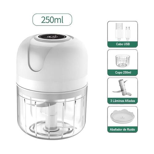 Mini Triturador Processador 250ml Branco USB Recarregável