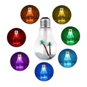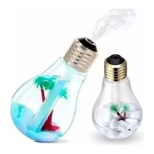 Descrição O Umidificador de Ar Luminária Lâmpada Led é mais do que um simples umidificador. Além de umidificar o ambiente tornando seu dia mais agradável, ele também é um lindo objeto de decoração com seus leds. De fácil instalação, pode ser utilizado na energia elétrica pelo adaptador ou até mesmo pela entrada USB do seu computador. Este umidificador de ar e luminária em formato de lâmpada, vem com uma pequena praia dentro. Possui conexão padrão USB e pode ser usada na tomada se utilizado um adaptador não incluso .