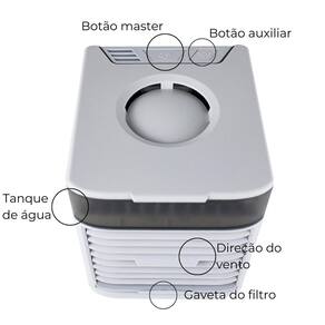 O mini resfriador de ar é um item projetado para uso individual em pequenos espaços. Ele funciona como um sistema de climatização compacto, utilizando água para resfriar o ar antes de liberá-lo através de suas saídas.