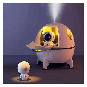Umidificador Cápsula de Astronauta perfeito para usar em ambientes infantis, quartos, consultórios, clínicas... Com 7 cores mistas em Led quentes e suaves pode ser usado para cromoterapia auxiliando no relaxamento da criança através das cores, durante a noite. 2 Modos de trabalho com ou sem LED ligado. Capacidade de 220ml e duração de 5-6 horas em uso contínuo ou 7-8 horas em modo intermitente. Super silencioso e recarregável via USB-c.