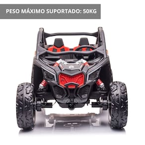 Com o UTV quadriciclo elétrico Can Am Maverick Importway a diversão está garantida! Ele pode ser controlado pela criança por meio de acionamento via pedal, ou pelo responsável através do controle remoto, além de possuir bateria recarregável de 24V. Ideal para crianças a partir de 3 anos, possui 2 assentos com cinto de segurança, atinge velocidade máxima de 8km/h e possui som e luzes.