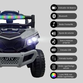 Prepare-se para muita diversão com o Mini UTV Elétrico Infantil World Onboard! Um carrinho cheio de estilo, robustez e segurança, ideal para crianças que amam aventuras. Com design inspirado em veículos off-road, ele transforma qualquer brincadeira em uma experiência emocionante.