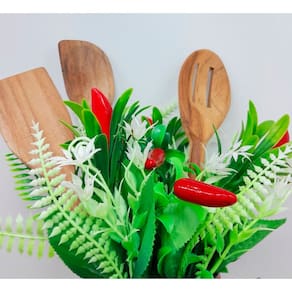 Vaso Regador de Alumínio com Arranjo e Talheres de Madeira
