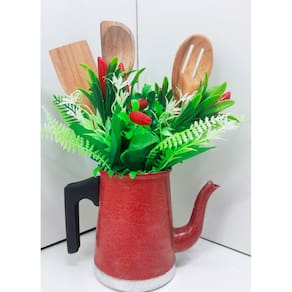 Decore e Encante com Estilo e Funcionalidade. Transforme qualquer ambiente com a beleza e a versatilidade do nosso Vaso Regador de Alumínio com Arranjo e Talheres de Madeira. Perfeito para decorar sua casa, escritório ou qualquer espaço que precise de um toque especial.