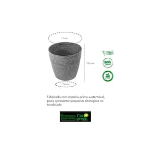 Mini vaso ou porta treco. O mini vaso é ideal para pequenas plantas, como a suculenta ou serve com porta trecos. São fabricados com matéria-prima sustentável, desenvolvida por meio da mistura entre 69% de materiais provenientes de fontes renováveis (madeira + Polietileno Verde I’m green) e uma parcela reduzida de polipropileno. Inspirados na costura plissê, possuem tamanhos perfeitos para comportarem vasos de plantar. WPC (Wood Plastic Composite), mistura composta por 55% de madeira e 45% plástico. Produto átóxico, reciclável e livre de Bisfenol A (BPA).