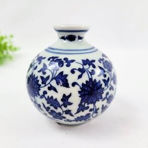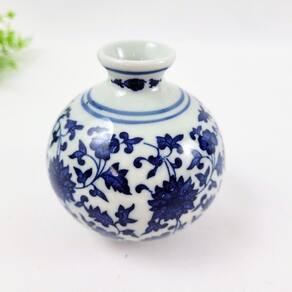 Estampa Floral Clássica: Padrão azul sobre fundo branco, com acabamento refinado. Porcelana de Alta Qualidade: Brilho, resistência e delicadeza em uma só peça. Pequeno e Versátil: Ideal para espaços reduzidos e composições delicadas. Boca Estreita: Perfeita para hastes finas ou uso decorativo sem flores.