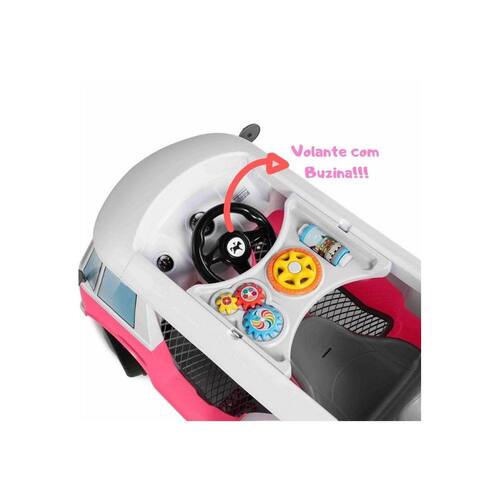 KOMBINA ROSA CALESITA Kombina, um brinquedo dois em um. Passeio ou pedal. Super estilosa a Kombina encanta com as suas cores. Para a versão passeio, ela vem com acessórios como o apoio de pé, aro protetor e haste com suporte para bolsa. Tem também um painel com peças em relevo, cores e formas que despertam a curiosidade dos pequenos e som que estimula a compreensão de causa e efeito. E para a diversão continuar com a versão pedal, é só desencaixar o aro protetor retirar o apoio de pé e a haste. A Kombina é rica em detalhes, tem retrovisor e faróis de brincadeirinha, buzina, e até cinto de segurança. Tem também, um espaço para guardar pequenos acessórios ou garrafinha de água.