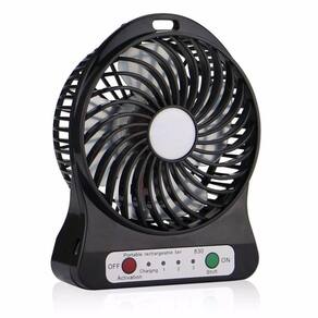 Mini-ventilador de mesa com bateria recarregável. Conector USB, possibilitando a recarga qualquer fonte de energia com entrada USB.