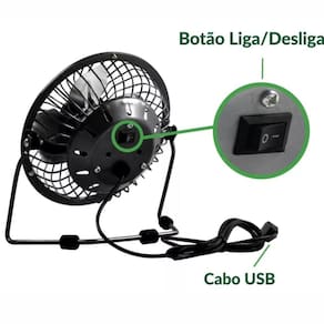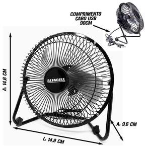 Ventilador de mesa usb alfacell com botão liga e desliga, plug usb, ventilação potente, leve e compacto, 4 polegadas inclinação regulável.