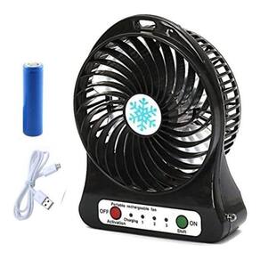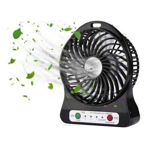 Tamanho compacto e livre de fios, sendo útil para qualquer situação e fácil de instalação. Possui 3 velocidades de ventilação, com motor silencioso. Podendo ser ligado através de bateria de litio recarregável e também por meio de um cabo usb, todos itens inclusos.