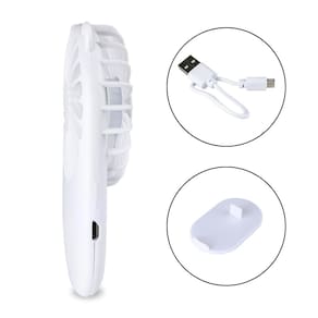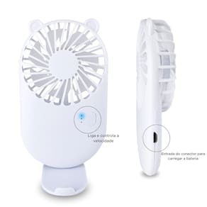 Contém: 01 - Ventilador Portátil Branco 01 - Cabo Carregador 01 - Suporte para o Ventilador
