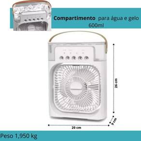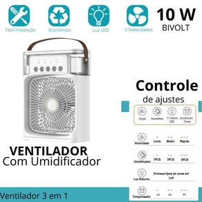 Principais perguntas sobre o produto e respostas: 1 posso regular a intensidade do vento Resposta: sim, ele tem a opção de 3 velocidades. 2 qual é a voltagem dele Resposta: ele é bivolt, funciona em todos os locais do brasil. 3 o produto possui função sleep desligamento automático Resposta: sim, tem um timer com a função para programar 1, 2 ou 3 horas para desligar. 4 ele é giratório Resposta: sim, ele pode ser posicionado manualmente para cima e para baixo. 5 o produto consome muita energia Resposta: não, o produto exige pouca energia para funcionamento. 6 qual a quantidade de água suportada em seu recipiente Resposta: a capacidade do mini climatizador de ar é de 600ml. 7 qual é o alcance da ventilação Resposta: o alcance gira em torno de 5 metros, mas o mesmo climatiza o ar quando o ambiente está fechado. Marca: Não Informado