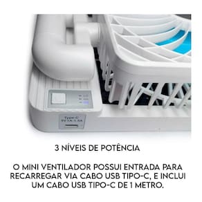 Design Moderno: Esteticamente agradável, o mini ventilador combina tecnologia e funcionalidade, tornando-o uma adição estilosa a qualquer ambiente.