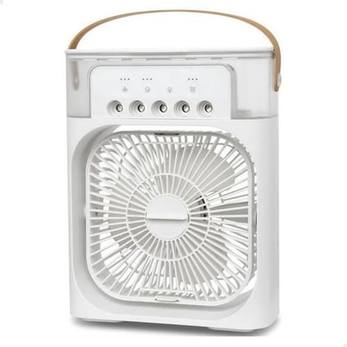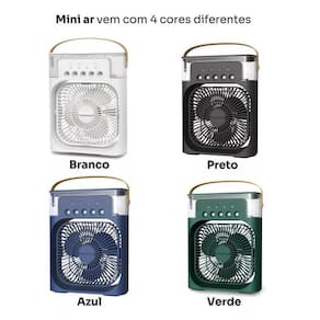 Mini Ventilador Umidificador Ar Portátil Casa Carro Veículos Cor: verde O mini climatizador portátil possui três Níveis de Refrigeração: Refresque o ambiente por meio da evaporação da água, ajustando entre três diferentes velocidades para garantir o máximo conforto.