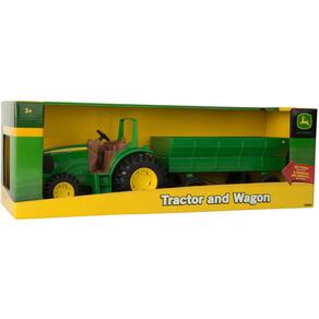 O conjunto inclui um trator John Deere com vagão sinalizador