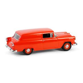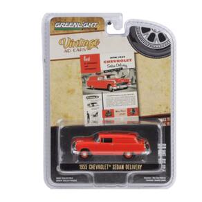 Este modelo da Greenlight representa o clássico Chevrolet Sedan Delivery de 1955, integrante da Série 11 da coleção Vintage AD Cars. Em escala 1:64 e com aproximadamente 7 cm de comprimento, esta miniatura homenageia os veículos comerciais da década de 1950, com visual publicitário retrô e acabamento nostálgico.